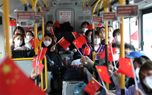 此次撫順醫療隊用了短短6個小時就完成了核酸檢測篩查任務,共增援大東區6個街道,78個社區村屯,全域264個點位,極大提高了大東區核酸檢測效率。臨行前,醫護人員揮動着手中的國旗,依依告別。(瀋殿成 楊海佳 孫若彬)