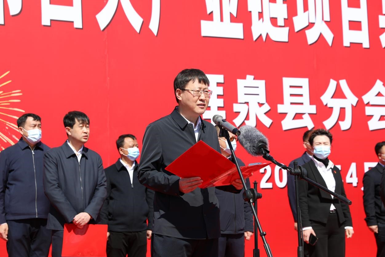 拜泉縣委副書記、縣長王其林在開工儀式上講話,王其林指出,全市百大產業鏈項目集中開工,全面吹響了拜泉縣「快發展、快建設」的衝鋒號,必將進一步促進全縣產業結構優化升級,經濟總量持續增長,加速形成經濟發展的增長極和新引擎。王其林要求,全縣各級各部門要加強要素保障,全力以赴加快重點項目建設,儘快掀起建設熱潮。縣直相關部門要積極主動服務,全力優化項目建設環境,推動項目儘早建成投用。
