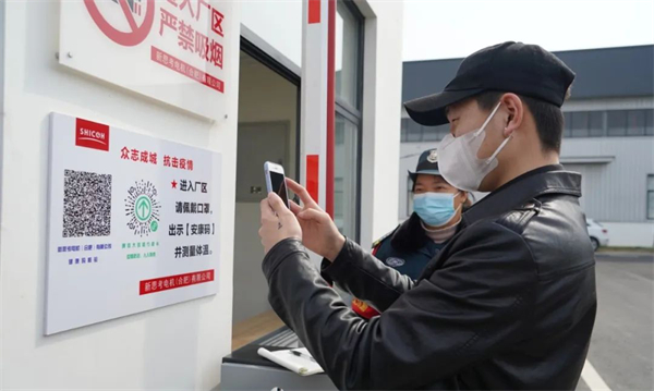 訂單排得再滿,疫情防控也來不得半點馬虎。在寶瑪克(合肥)科技有限公司大門處,安康碼、行程碼醒目地擺放在入口處,2名安保人員專職負責對外來人員進行測溫、掃碼等工作。據介紹,公司現有員工250餘人,公司已提前將員工安康碼和行程碼導入進廠人臉識別系統,這樣員工在人臉識別進入公司時,安康碼、行程碼、測體溫一併完成,確保信息一個不漏;同時公司每日對各辦公室進行消毒兩次,並安排專人督查防控措施落實情況。