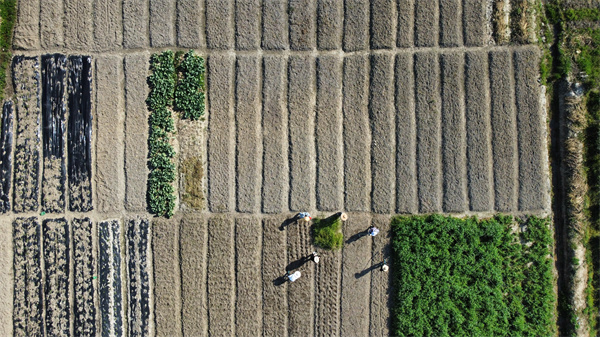 頂圖:樸蔓農場採摘園內,村民們正分工協作,耕田、松土、播種,一道道程式有條不紊,繪就了一幅生機盎然的春耕圖