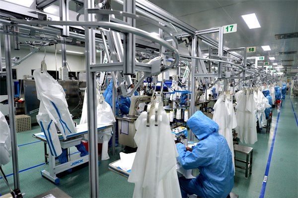 防護服生產線也開足了馬力