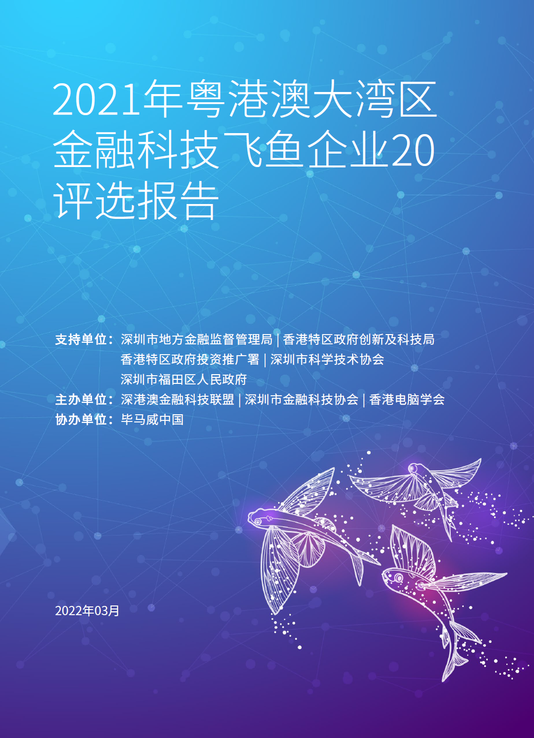 在深圳市地方金融監督管理局、香港特別行政區政府創新及科技局、香港特別行政區政府投資推廣署、深圳市科學技術協會、深圳市福田區人民政府等單位支持下,深港澳金融科技聯盟、深圳市金融科技協會、香港電腦學會主辦,畢馬威中國協辦的首屆粵港澳大灣區金融科技飛魚企業20評選活動(以下簡稱「飛魚20評選活動」)歷時6個月順利完成,並於2022年1月發佈首屆飛魚20榜單。