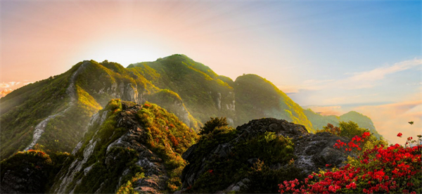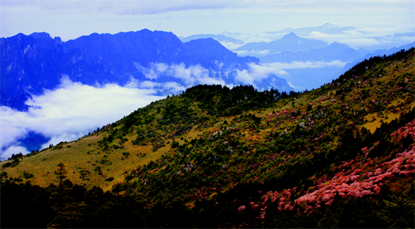 每年4月到6月,從神農頂景區的神農營到太子埡一線,杜鵑花海綿延十多公里,是華中地區乃至我國的一大奇觀。漫山遍野的杜鵑花盛放,或燦若蒸霞,或星星點點,紅艷艷的高山杜鵑與山頂四周的高山草甸、劍竹林和秦嶺冷杉相互襯托,構成一幅美麗的原生態畫卷,給神農架的山川溝壑增添了無限生氣和色彩。