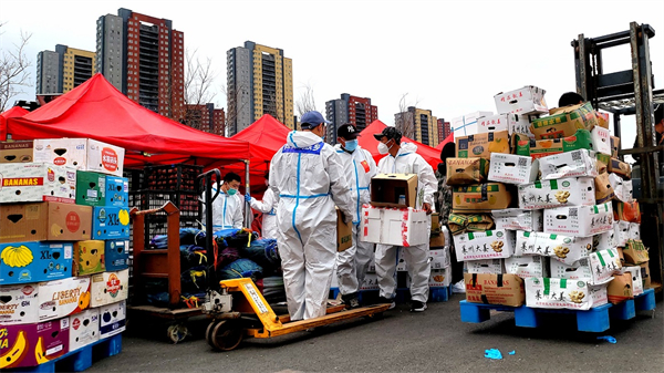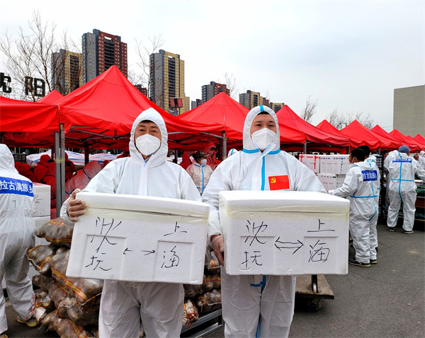 在前幾天遼寧支援吉林抗疫蔬菜分裝工作中,瀋撫示範區主動請纓,迅速集結機關幹部和群眾,開足馬力、通宵達旦,用兩天多的時間分裝90萬斤蔬菜,圓滿完成了分配任務。
