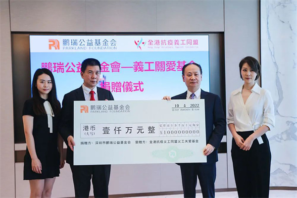 4月10日,鵬瑞公益基金會發起人徐航先生及深圳市鵬瑞公益基金會向“全港社區抗疫連線”及香港義工聯盟聯合發起成立“全港抗疫義工同盟”所設立的“義工關愛基金”捐贈港幣1000萬元,為香港逾萬名的香港抗疫一線的義工們提供三大援助,包括應急援助金、免費酒店住宿及提供大型義工行動資助。