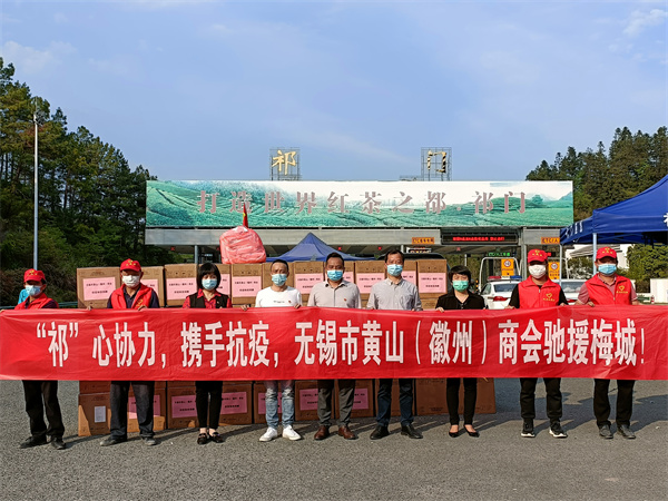 4月12日,無錫市黃山(徽州)商會在會長李江峰帶領下,將商會籌措的10萬元抗疫物資(包括1000只醫用面罩、1000套醫用防護服),千裏馳援送到祁門縣疫情防控應急指揮部,助力祁門打贏疫情防控阻擊戰。