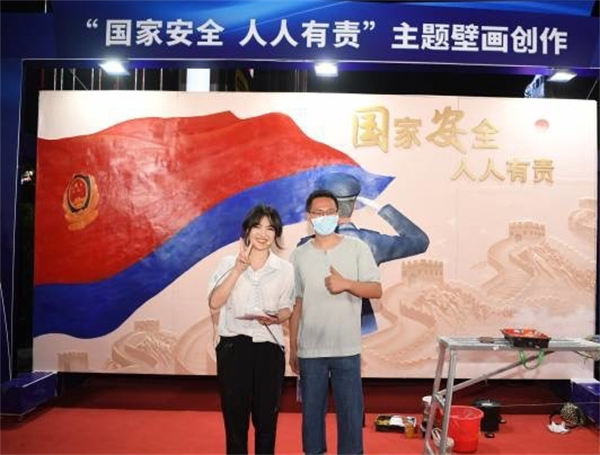 4月5日至10日,邀請知名壁畫師張麗佳在市中心大型商超,現場創作了一幅2.44米高的巨型浮雕壁畫《國家安全人人有責》。壁畫創作現場還設置了國家安全知識展板和互動攤位,「圍觀」壁畫創作的市民拿出手機掃一掃,將總體國家安全觀的內容分享至朋友圈,搖身一變成了國家安全教育宣傳員,就能收穫一份國家安全宣傳小禮物。