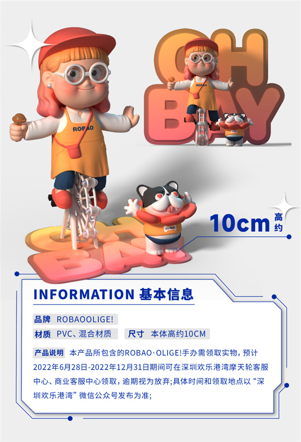 歡樂港灣聯合中國新一代的中國新銳玩具設計師、DREAMROOM品牌主理人劉夢,創作4款數字藝術藏品《「摩」力港灣》,分別為元氣旅、藝術夢、粗乃丸、浪漫夜,描繪元氣女孩ROBAO與寵物OLIGE在歡樂港灣的美好生活。ROBAO寓意「福包」希望福運一直包裹着你,以標誌性的笑臉,內心充滿溫暖和希望的小女孩傳遞積極溫暖的能量。寵物OLIGE寓意「加油」!希望可以給你打氣!每一天笑口常開,享受小確幸!