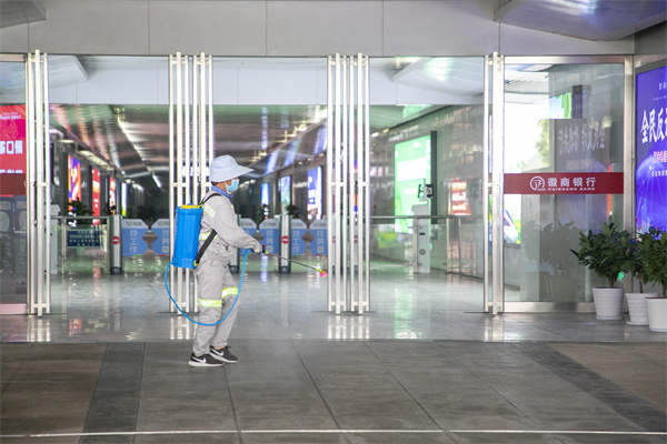 「除了日常消殺8次外,每天晚上最後一趟列車到達,旅客全部離站後,我們會對站區進行一次全方位的深度消殺,能為疫情防控貢獻自己的一份力量,我很自豪!」保潔員倪其梅說道。半個小時時間,從公交車場站、到進出站口,一趟消殺下來,她的衣服早已濕透。在她放下消毒桶後,也沒想着休息一會兒,就又拿起噴壺和抹布,對站區手扶電梯扶手及垂直電梯按鈕、出站閘機等旅客頻繁使用的區域進行擦拭消毒。在這個特殊的「戰場」,無論是在常規區域,還是在重點區域,她們步伐矯健,工作細緻入微,不放過任何一個衛生死角,進行全方位、無死角、多頻次的消毒防疫,全力切斷病毒傳播途徑。
