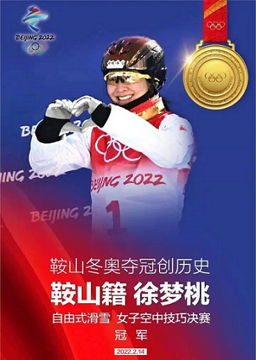 北京冬奧會賽場,鞍山籍運動員徐夢桃在比賽中奪得1金1銀。至此,鞍山籍運動員在夏季奧運會、冬季奧運會中均有金牌入賬,鞍山以11人次斬獲16枚奧運金牌的成績,成為全國地市級城市中獲得金牌數最多城市,是當之無愧的「雙奧」冠軍之城!鞍山健兒在奧運賽場為國家、為遼寧贏得了榮譽,也為遼寧全面振興全方位振興注入了強大的精神動力。