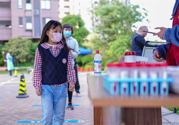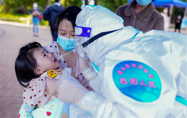 醫護人員正在給小朋友進行核酸檢測(季雲岡 葛慶釗/攝)