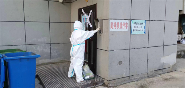 目前,嘉和盛景小區內封控單元居民的生活物資配送和垃圾清運成為物業最繁忙的一項工作,雖然物業員工年齡偏大,但他們都恪盡職守,積極主動投入一線工作,通過建立封控人員微信群等方式,隨時掌握了解封控人員需求,並針對封控居民開展心裏疏導,安撫小區業主情緒,以免造成過度恐慌。