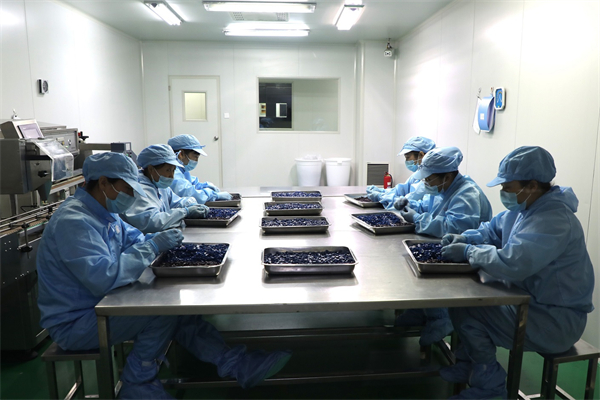 大興安嶺林格貝有機食品公司生產車間內工人工作情景。李日東攝