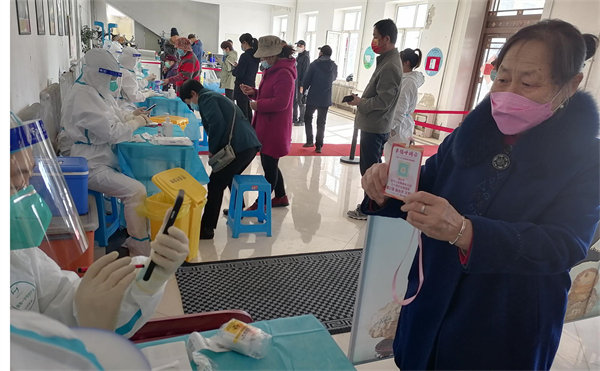 4月25日,家住黑龍江省呼瑪鎮印刷廠小區68歲的宿大娘,胸前掛着「幸福呼瑪卡」出門了,就近來到長虹社區電影院核酸採集點排隊等待採樣。輪到宿大娘時,採樣錄入人員舉起裝有「幸福呼瑪APP」的手機,對準胸前的「幸福呼瑪卡」一掃,老人的信息全部錄入「呼疫通」大數據平台,極大方便了像宿大娘一樣不會使用智能手機的高齡老人。