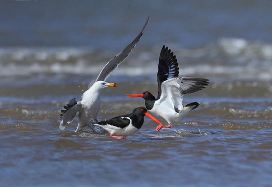 營口作為中國大陸最佳可觀夕陽入海的地級市,「鳥浪」無疑為夕陽晚照增添了一抹靚麗的色彩。當紅暈的夕陽緩緩沉入大海深處,在灘涂上覓食的水鳥隨着潮汐,翩然起舞。成千上萬隻水鳥時起飛,場面蔚為壯觀。它們時而如烈風下翻卷的烏雲,時而如海面蕩漾的波浪,時而輕柔的如一陣微風掠過,時而如萬箭齊發,速度快的令人嘖舌,成群的鳥兒與漁船為伴、與海浪呼應,與海灘相稱,與朝暉夕落渾然一體,構成一道道炫彩絕倫、妙不可言的自然奇景。