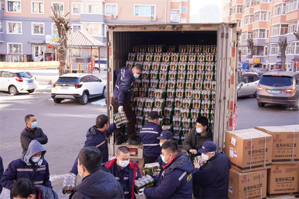 其中,4月初爆發的平房區哈南十九路1號新冠肺炎疫情。由於事發突然,該場所儲存的物資較為匱乏。得知這個消息後,秋林格瓦斯飲料第一時間響應政府號召,作為全區第一家捐助的企業將1000箱秋林格瓦斯氣泡水飲料送到現場以解燃眉之急。