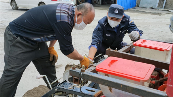 5月1日上午,平房鎮派出所民警吳東新在村屯走訪時來到楊大哥家中,看到楊大哥面露難色,經過詢問得知楊大哥這幾天正在播種玉米,可昨天下午播撒機發生了故障,撒種時斷斷續續,耽誤了農活,聯繫了維修人員,卻因為疫情封控,得3號才能來維修。春耕不等人啊,楊大哥正坐在院兒里發愁,小吳警官就來了。了解情況後,吳東新拍拍手,大哥,你家有工具麼,要不讓我看看設備到底哪兒出了問題。