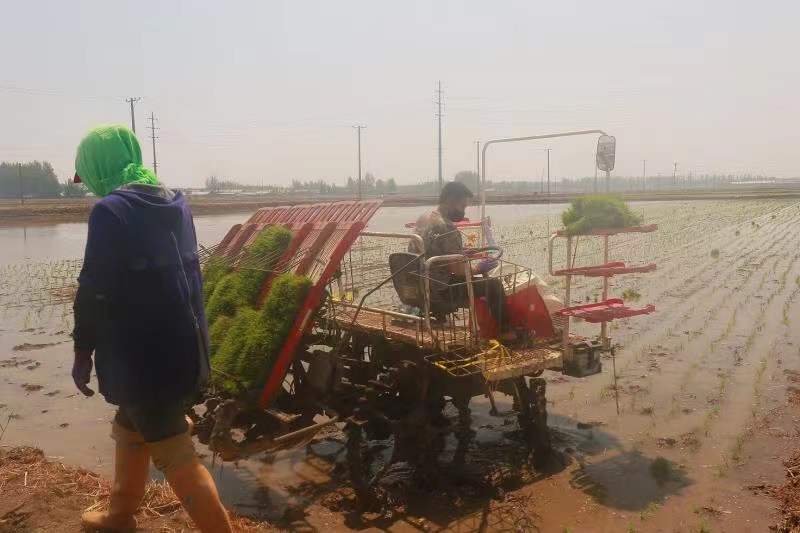 5月5日,瀋陽市遼中區蒲東街道,遼闊的田地里拖拉機耙地、插秧機作業轟鳴,農民們邊忙於耕作邊歡笑打趣,上演一幅生動的農事生產畫卷。村民們在與時間賽跑,搶抓農時,播種着綠色和希望。