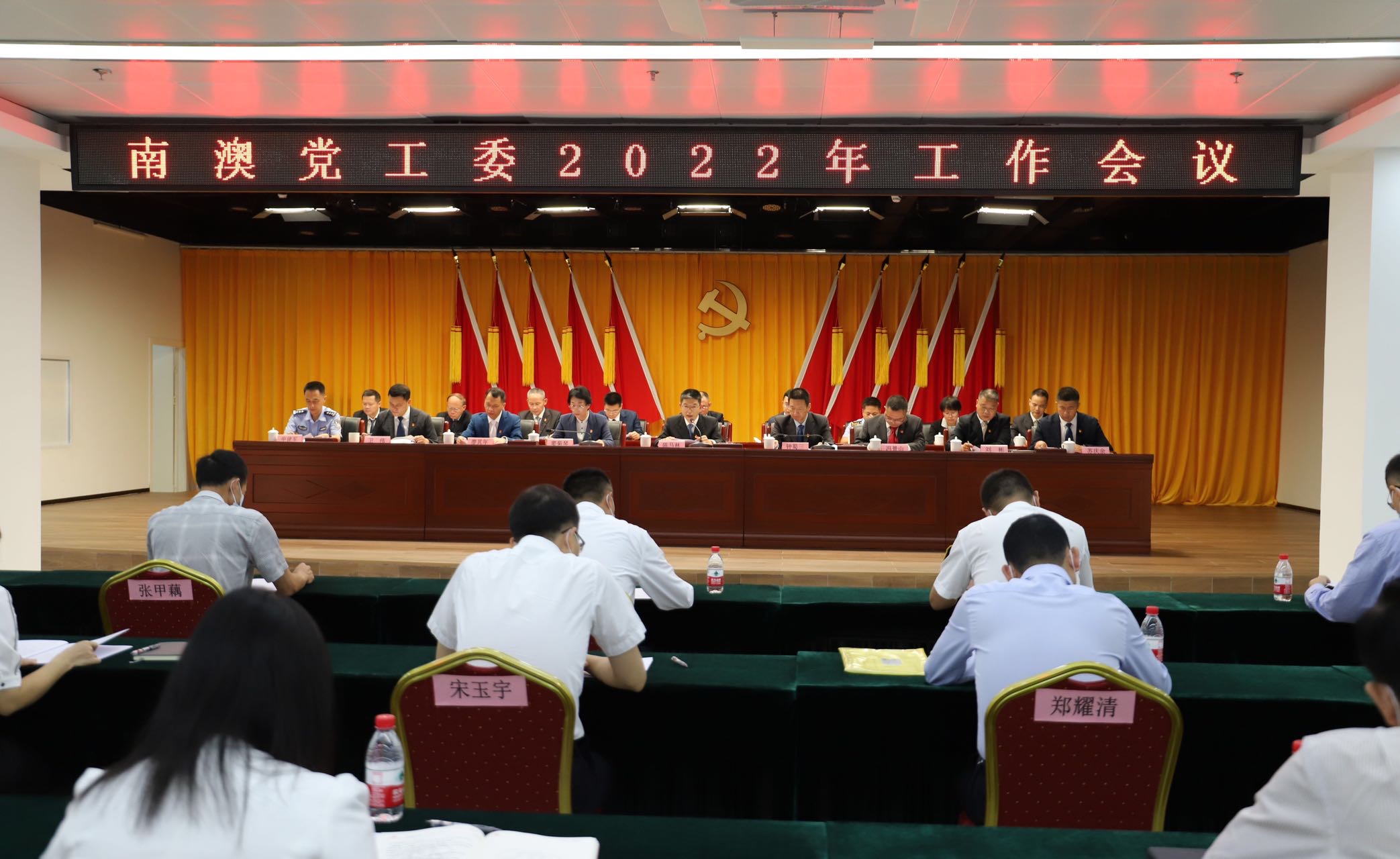 5月7日,深圳市大鵬新區南澳黨工委2022年工作會議召開,南澳辦事處副處級以上領導幹部、駐街單位主要負責同志、學校和醫院主要負責人、人大代表、政協委員、老幹部代表、南澳辦事處幹部代表、各社區黨委書記及股份公司董事長、居民小組黨支部書記代表等參加了會議。