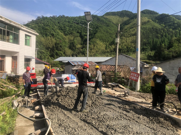 5月10日,在皖南黃山區新豐鄉青山路施工現場,工人們正在澆築水泥路面,預計5月底前就能完工,屆時一條寬敞的農村四級公路將交付使用,居民出行將更加方便。新豐鄉居民陳某說“這條路原本比較窄,路面坑坑哇哇,村裏人出行很不方便,現在村裏人生活條件好了,不少群眾都買了小汽車,但道路不行,車子也難開,現在新路馬上就要修好了,路面寬了,也平整了,群眾很滿意”。