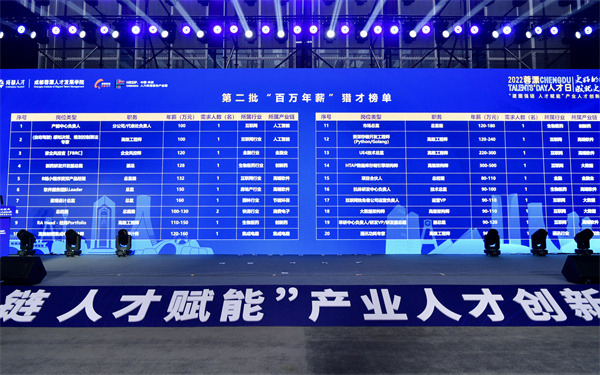 會上,成都高新區宣佈成立西部「獵頭谷」、推出第二批百萬年薪榜,以培育獵頭機構吸引高端人才;推出第二批企業博士後站點招才榜、全國首創「個人申報、企業評價、政府採信」職稱開放融通評價舉措,鼓勵企業自主培育人才、創新人才評價機制。