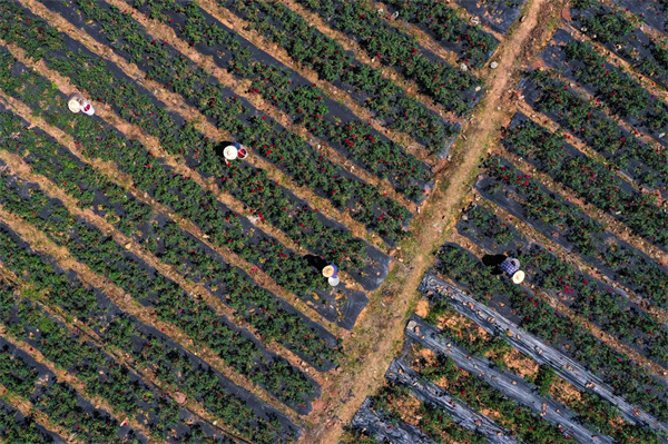 初夏時節,徽州區潛口鎮墨紅玫瑰種植基地裏,大片的鮮紅的玫瑰迎風綻放,絢麗多彩,花香四溢。“我們在這裏種植、管理、採摘,工錢是按照小時計算,一天80-100元左右,一年下來有一兩萬收入,收入還是可觀的”。5月10日上午,记者在墨紅玫瑰種植基地看到,徽州區潛口鎮坤沙村村民汪貴珍正和其他村民一起,在基地裏忙著採收盛開的墨紅玫瑰。