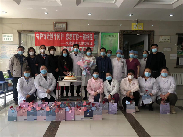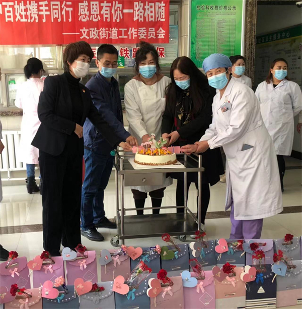 「你們辛苦了。祝你們節日快樂!」通過與護士們的親切交談,了解她們的工作、生活情況,向她們送上禮物及獻上鮮花,感謝她們默默無聞的辛勤工作和無私奉獻。疫情發生以來,戰「疫」一線的社區衛生服務中心工作人員一直在堅守,尤其在疫情防控殲滅戰關鍵階段,文政社區衛生服務中心作為基層醫療衛生機構,是群眾疾病預防控制的第一道防線,時刻繃緊疫情防控這根弦,嚴格落實各項防控措施,堅決守住了防護管理的安全線,充分展現了護理人的擔當和勇氣,踐行了初心使命。