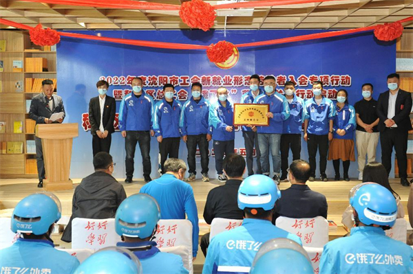 為推動新就業形態勞動者入會,切實履行工會維護服務職能,5月12日,瀋陽市和平區外賣配送服務行業聯合工會成立大會在好好學習職工書屋舉行,標誌着和平區首家外賣配送群體工會組織成立,外賣員們有了自己的「娘家」。這也是和平區全面落實「振興新突破,我要當先鋒」專項工作的重要舉措。