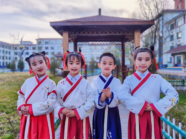 《詩經》中,基本都是四言短句,語言活潑,富於音韻,讀起來朗朗上口,多為重複強調的詩句,符合兒童的語言特點,也深受孩子們喜歡。一大清早,孩子們就自發組織,到小花園的「靜思亭」里誦讀起來。或低吟淺唱,或慷慨高歌,在《詩經》裡,體驗着最美好的草木,最純潔的情感。(記者寇剛)