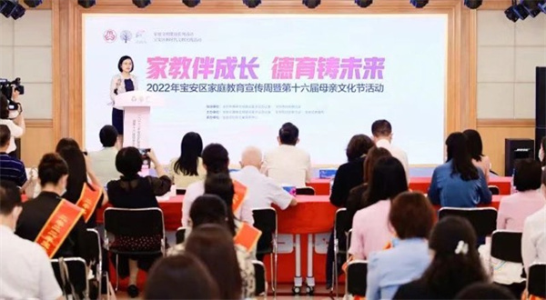 在5月15日「國際家庭日」來臨之際,14日,由寶安區文明辦、寶安區婦聯、寶安區教育局聯合主辦的「家教伴成長 德育鑄未來」——2022年寶安區家庭教育宣傳周暨第十六屆母親文化節活動在區婦兒大廈舉行。現場發佈了寶安區家庭教育宣傳周百場服務和家庭教育精品課程,並為2021年全國和廣東「最美家庭」、2022年寶安區十大「美麗母親」頒發榮譽證書。