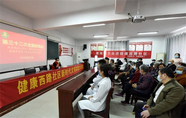 當日上午,在臥牛山街道健康西路社區,一場公益講座在這裏舉行,講座邀請來了惠耳聽力、普瑞眼科等醫療機構、社工組織志願者就健康知識進行講解和解答,並現場開展愛心義診。同時還邀請專家圍繞殘疾人就業創業,開展面對面宣傳指導。