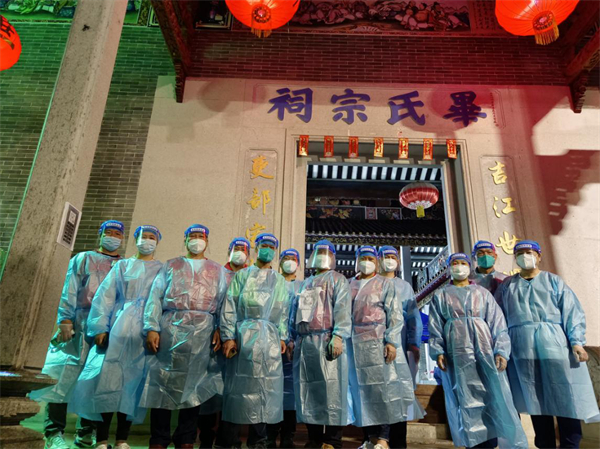 直至六點三十分,接到火速支援新華街田美村劉氏祠堂開展全民核酸檢測命令,作為支援小組組長的他第一個來到採樣現場,主動協調,明確分工,確保了檢測順利展開。從維持秩序、安撫群眾情緒,到引導群眾高效檢測,他一直忙碌着,堅守執勤崗位至深夜。