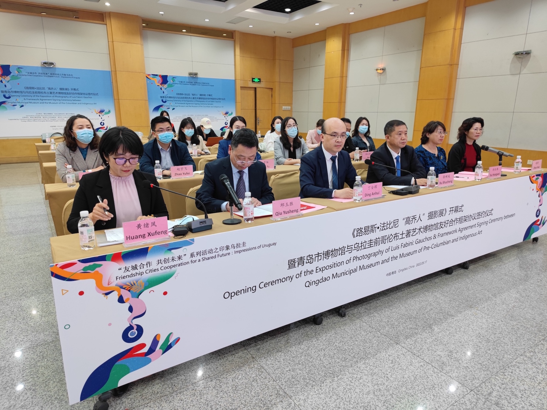 在「國際博物館日」即將來臨之際,5月17日下午,「友城合作 共創未來」系列活動之印象烏拉圭《路易斯·法比尼「高喬人」攝影展》開幕式暨青島市博物館與烏拉圭前哥倫布土著藝術博物館友好合作框架協議簽約儀式在青島市博物館舉辦。