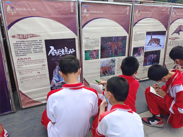 在參觀完博物館後,同學們還前往南雄市博物館新館東側門,參觀由廣東省流動博物館主辦、南雄市博物館承辦的「虎虎生福——壬寅(虎年)新春生肖文物圖片聯展」。本次展覽為期一個月,展覽時間為2022年5月17日至6月17日。《虎虎生福——2022壬寅(虎年)新春生肖文物圖片聯展》共有96塊展板,集中了數百幅與虎相關的文物、標本、藝術品圖片,通過圖片形式集中展現近50家文博機構所藏與虎相關的文物、標本、藝術品,為廣大市民獻上文化大餐。