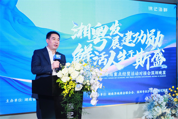 徐記海鮮董事長徐國華作為本次活動的承辦方發表了致辭,在致辭中,首先對各位領導和嘉賓的光臨表示感謝,感謝在深各湖南商會的大力支持與幫助,讓徐記海鮮再度承辦此次活動。隨後對去年“湖南省招商引資政策推介會”進行回顧。時隔一年再次相聚鵬城,在此期間徐記海鮮砥礪前行,深圳從1家門店到5家門店,如此迅猛的發展離不開各級政府的關心與指導。作為從湖南走出來的全國餐飲品牌,把肩上的責任化作奮鬥的動力,無論疫情如何反復,都會堅持對品質的追求,以初心致匠心,必將不負所期成為湖南乃至全國具有美譽度的品牌。