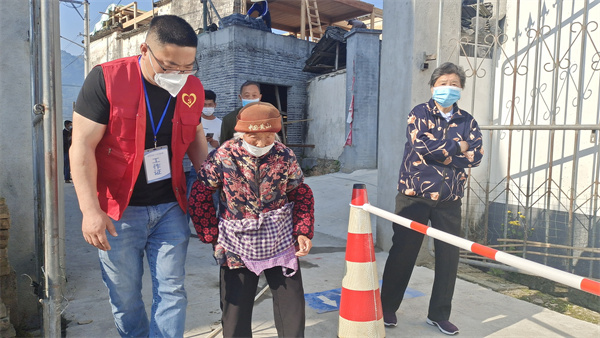 “請大家帶好口罩、間隔一米、測量體溫,錄好系統的來我這裏登記領取通行證”。在5月19日的全員核酸檢測中,74歲的老黨員汪景恒作志願者,協助關麓村開展核酸檢測工作,為村民抄寫發放通行證,一寫就是一上午。