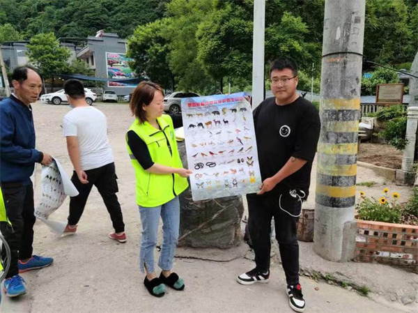 太平國有生態林場工作人員向市民發放秦嶺生態環境保護宣傳資料