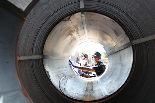 廣州海關所屬南沙海關關員快速驗放進口鋼卷原料