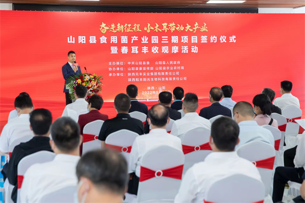 5月23日,「奮進新征程·小木耳帶動大產業」——山陽縣食用菌產業園三期項目簽約儀式暨春耳豐收觀摩活動在陝西省商洛市山陽縣和豐陽光食用菌產業園舉行。本次活動旨在全面推動山陽縣食用菌全產業鏈發展,進一步完善聯農帶農機制,帶動當地及移民搬遷群眾實現產業增收、就業增收。