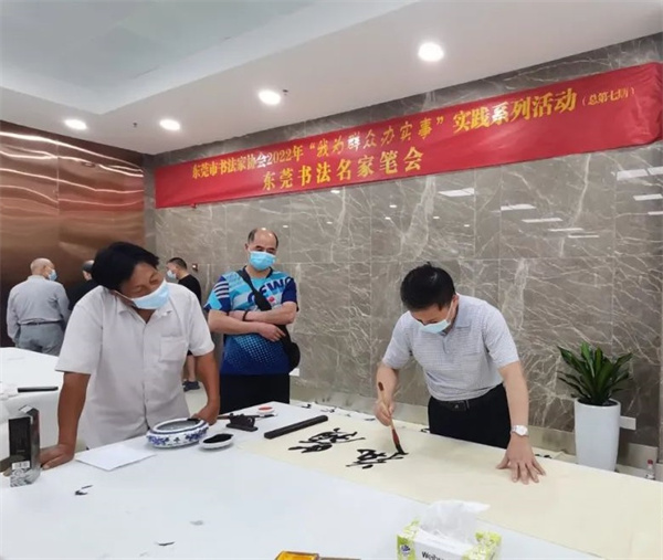 黃貴田作為東莞書法隊伍的一名老兵,曾帶領東莞書協創新求變亦取得諸多亮點,「黃貴田書法作品展」也在活動當天在大嶺山圖書館開展,展出其將近年來創作的逾百件佳作,冀與諸友共享書法之美、藝術之美,展期至6月6日。此外,當天活動開幕式後還舉行了東莞市書法家協會2022年「我為群眾辦實事」實踐系列活動(總第七期)——東莞書法名家筆會,周漢標、陳廣權、李耀權、姚曉剛、謝洪濤等書法名家現場潑墨揮毫,為眾多書法愛好者提供現場學習交流機會。(記者冷運軍)