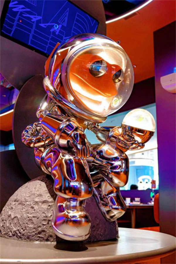 這次品牌升級裏最亮眼最讓蛙粉們爭相拍照打卡的太空人雕塑,以及店內隨處可見的科技太空元素。
