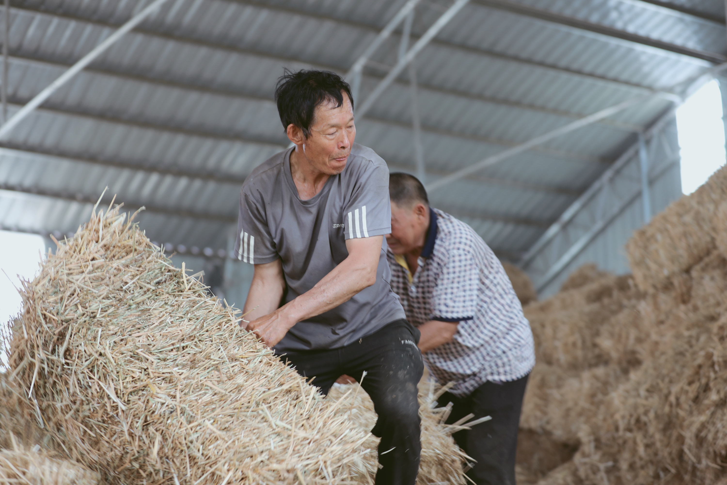 小麥歸倉,稭稈卻去向廣泛。在平橋區昊源養殖場裏,細碎的麥稭與飼料拌在一起,倒入食槽餵牛。牛糞堆肥,合作社又會用來養荷花。村民說:「這叫鮮花插在牛糞上,開的那叫一個水靈!」「麥稭每噸500元,比飼料便宜很多,一年下來節省了近一半的成本。」平橋區昊源養殖場負責人潘俊鋒說。