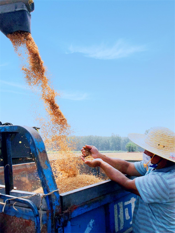 「我們在充分調度本縣自有4600臺聯合收割機的同時,又設立4個跨區作業機收服務站,引進外來作業機車2600臺。」息縣農機中心副主任黃周林介紹。