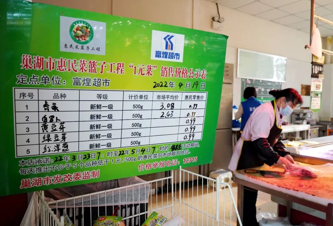 活動期間,巢湖市民可在安德利超市巢湖路店、富煌超市團結路店、裕溪河畔店、汽車站店4家指定的門店買到惠民菜,參與活動的門店將為惠民菜設置專區,方便市民購買。
