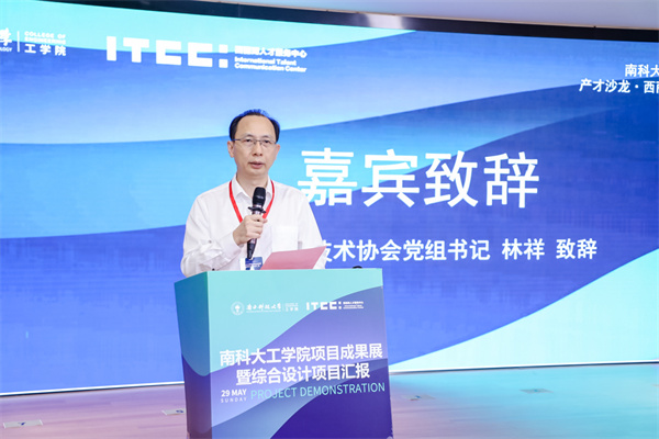 深圳市科學技術協會黨組書記林祥致開場辭,他表示,高校院所一直是源頭創新的橋頭堡,南方科技大學工學院實踐的校企合作,產學研深度融合助推「新工科」創新型人才的培養模式非常值得推廣。他強調,西麗湖人才服務中心作為「產才融合」的公共服務平台,要做好高校和企業之間的「紅娘」服務,積極為雙方導入高層次人才、技術項目和產學研需求。