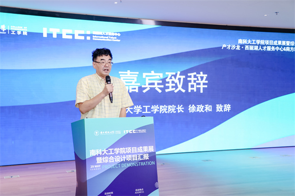 南方科技大學工學院院長、中國工程院外籍院士徐政和在致辭中介紹到,截至今年,工學院《綜合設計》課程已完成企業項目 82 項,參與學生 273 名,合作企業近 50 家,如華為、騰訊、邁瑞、深信服等。他希望,各企業與工學院一起,探索與實踐校企協同育人的創新模式,造就大批能夠適應和引領新一輪科技革命和產業變革的卓越工程人才。