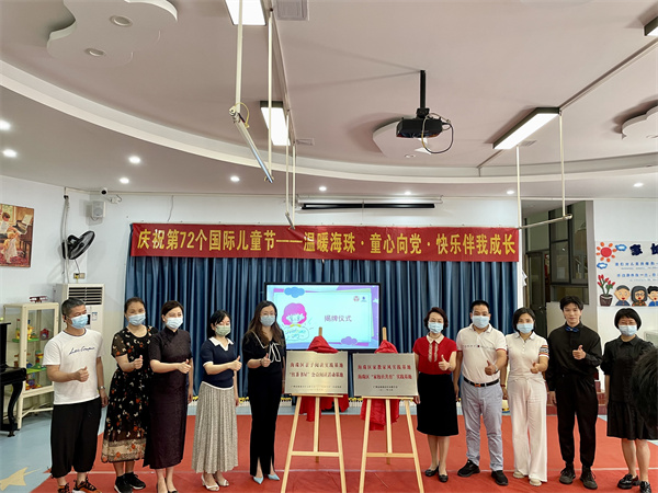 海珠區婦聯突出服務重點在先,共建家教家風實踐陣地,與雅思幼兒園簽約掛牌合影留念。