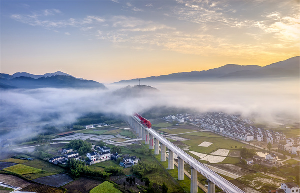 據安徽黃山市鐵路投資有限公司負責人介紹,池黃高鐵線路正線長125.1公里,其中黃山區境內50.2公里(隧道14座,約31.8公里,橋樑21座,約13.6公里,其餘為路基工程4.8公里),設計時速350公里。工程總投資約183.7億元,施工總工期為4.5年,計劃2024年建成通車。(記者 吳敏 通訊員 李和平 歐陽如晨)
