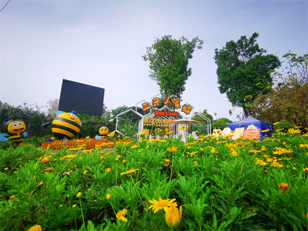 可以是野趣與科普兼備的:蜂蜜是怎麼釀造出來的?地球上如果沒有蜜蜂會變成什麼樣?在「三隻小蜜蜂」主題樂園,孩子們可以在玩耍中近距離觀看蜜蜂,觀察它們的居住環境,了解蜂蜜的生產過程,各種各樣的遊戲與設置都與蜜蜂有關,2022年1月園區試運營以來,已經吸引了8萬人次打卡。
