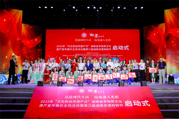 啟動式上,湖南省文旅廳發佈湖南省第五批國家級代表性項目並舉行授牌儀式。2021年,湖南省新入選第五批國家級非物質文化遺產代表性項目19個,包括新增項目老司城傳說、嘉禾伴嫁歌、巫家拳、岩鷹拳、君山銀針茶製作技藝、雕花蜜餞製作技藝、火宮殿臭豆腐製作技藝7項,擴展項目板板龍燈、漣源湘劇、梅山剪紙、湘西苗繡、通道侗族木構建築營造技藝、岳州扇製作技藝、壇下鄉銅鑼傳統製作技藝、陳氏蜂療法、龍山藥王醫藥文化、端午節(道州龍船習俗)、瑤族盤王節(還盤王願)、南嶽廟會12項。